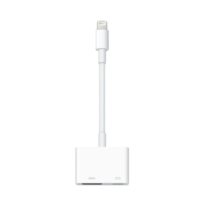 Anslut din iPhone eller iPad med Lightning-anslutning till en HDMI-utrustad TV, bildskärm, projektor eller annan kompatibel visningsenhet med hjälp av Lightning Digital AV Adapter.