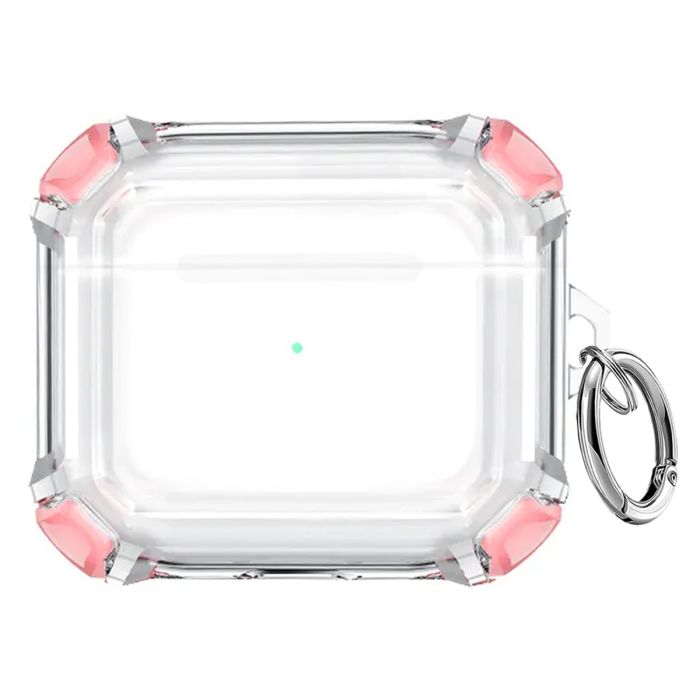 Skalet har förstärkta hörn i rosa för extra stöttålighet och kommer med en praktisk karbinhake som gör det enkelt att fästa på väskor, bälten eller nyckelringar.