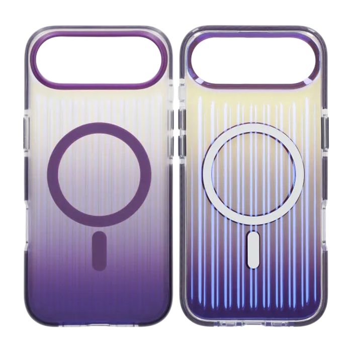 Säkra din iPhone Air med detta tuffa, korrugerade mobilskal som har en elegant färgövergång från mörklila till transparent.
