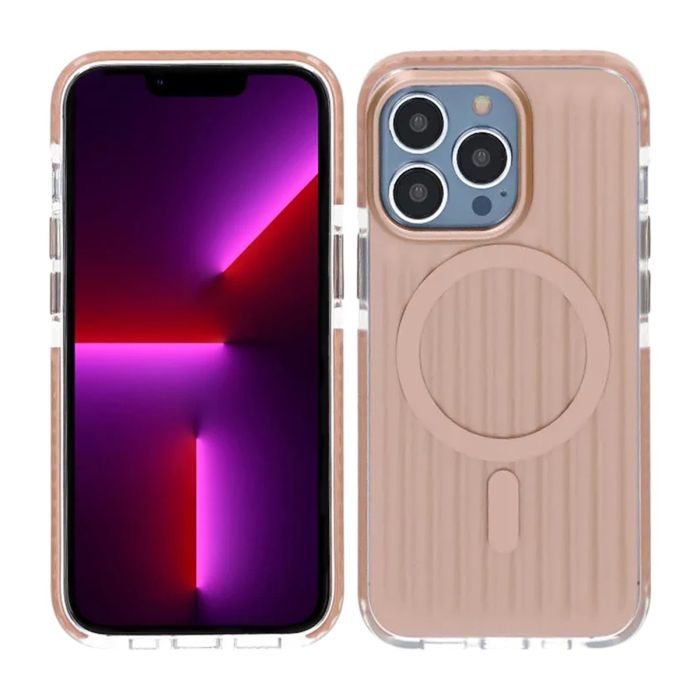 Den korrugerade baksidan i guld ger både unikt utseende och förbättrat grepp, samtidigt som MagSafe-kompatibilitet gör trådlös laddning smidig och stabil.