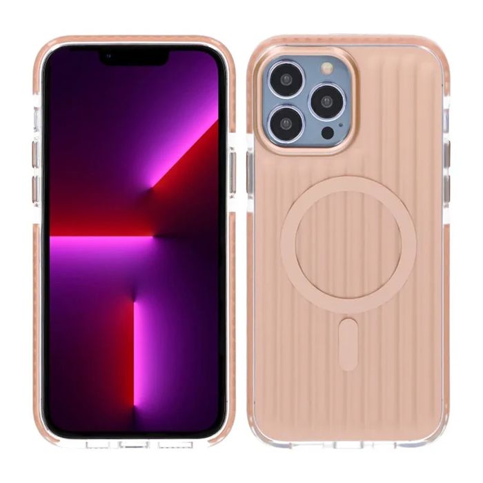 Den korrugerade baksidan i guld ger både unikt utseende och förbättrat grepp, samtidigt som MagSafe-kompatibilitet gör trådlös laddning smidig och stabil.