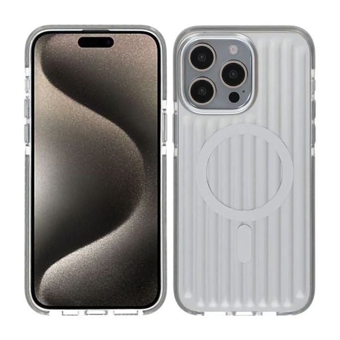 Den korrugerade baksidan i silver ger både unikt utseende och förbättrat grepp, samtidigt som MagSafe-kompatibilitet gör trådlös laddning smidig och stabil.