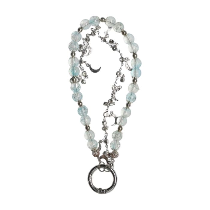 Bandet är tillverkat av en högkvalitatv lina som håller ihop pärlorna samt en dekorativ metallkedja. Remmen och haken är tålig och stark så att du kan känna dig säker när du har fäst snöret i exempelvis ditt mobilskal.