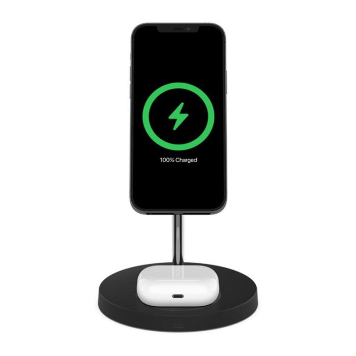 Denna innovativa laddningslösning kombinerar funktionalitet, effektivitet och stil för att möta alla dina laddningsbehov. Med 2-i-1 laddstation för trådlös laddning kan du ladda din iPhone och dina Airpods samtidigt.