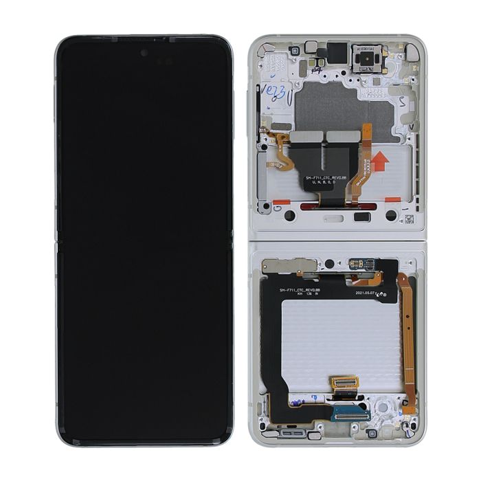 Med denna original reservdel byter du enkelt och smidigt ut skärmen på din Samsung Galaxy Z Flip 3 5G 2021.