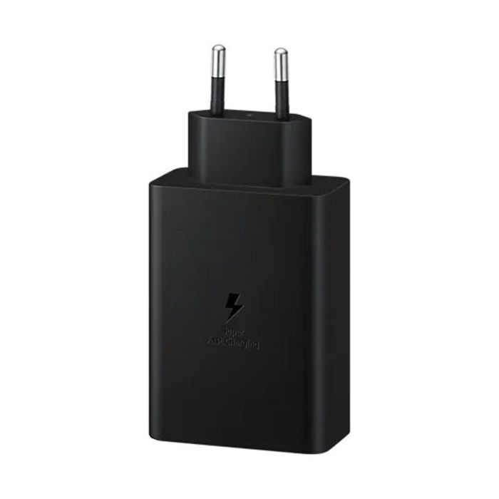 Samsung Trio 65W-laddaren fokuserar på effektivitet, med den första USB-C-porten som ger en kraftfull laddning, medan de andra portarna samarbetar för att hålla dina enheter på topp.