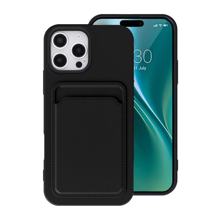 iPhone 16 Pro Mobilskal Silikon med Korthållare - Svart