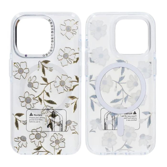 - Transparent mobilskal med motiv av blommor