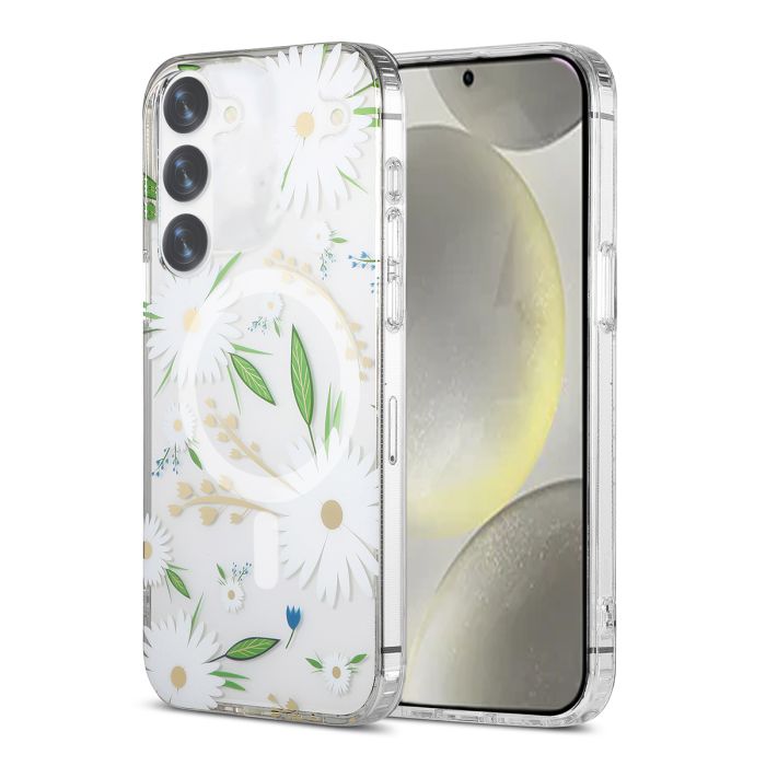 Samsung Galaxy S23 Mobilskal Magnet - Blommor Vit