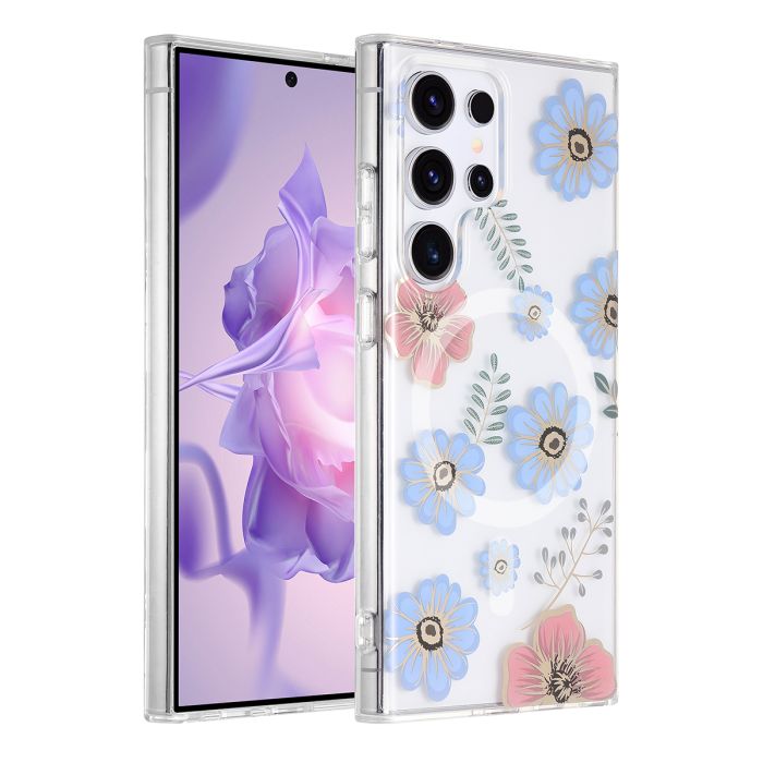Samsung Galaxy S24 Ultra Mobilskal Magnet - Blommor Röd/Blå